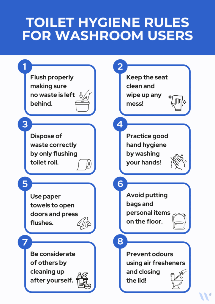 - Avoid Contact with Toilet Water: Refrain from touching toilet water directly and avoid splashing it onto yourself or other surfaces.